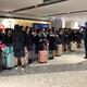 初めての海外に緊張の面持ちで集まった派遣生徒8名。いずれも国際経済科の1年生で、海外(特に韓国)に興味・関心の強い生徒が選抜されました。お見送りに来ていただいた保護者へ研修ツアーへの意気込みを伝え、いざ憧れの韓国に向けて出発です。