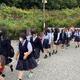 少し緊張気味にグラウンドを進む本校生徒を待ち受けていたのは、校舎の窓から「こんにちは!」「なまらかわいい!」と叫ぶ生徒の声。一気に緊張がほぐれ、生徒にも笑顔が戻りました。
