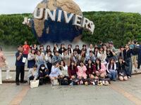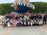 本日はUSJ。私服です。生徒達の個性が溢れてます。生徒の入場と同時に雨が上がりました。良かった。