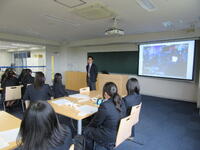 避難完了後、苫小牧市市民生活部危機管理室より北構孝悦様に来ていただき、カムチャッカ半島地震を事例にした津波の危険性や、苫小牧市のハザードマップの見方などについてお話をしていただき、生徒の防災意識は高まったのではないかと思います。いざというときの備えは大事なので、今日の訓練を今後に生かしていきたいものです。北構様、講話をしていただき、ありがとうございました。