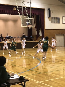 1回戦の浦河高校は冬季大会で対戦したばかりの相手でした。慣れている相手とはいえ、身長と身体能力、モチベーションが高いチームですので、初戦から警戒していました。相手のゾーンディフェンスに苦戦するかと思いましたが、シュートの確率が良く、前半で差をつけることに成功しました。1年生もデビューし、怪我人を除く全員がコートに立つことができました。