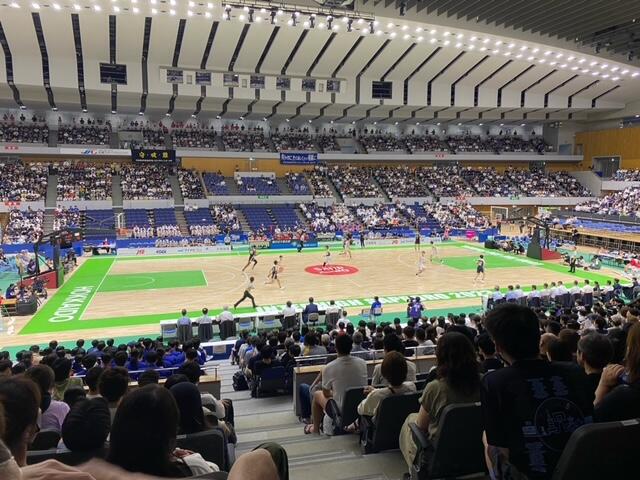 まず、北海道インターハイがあったということで、せっかくなので決勝戦をチームで観戦について。自分が生きている間にインターハイが来ることは2回程度かなと思います。もし36年後に開催されているとしたら私は68歳、生徒たちは53歳くらいということです。全く想像がつかない未来ですね。今回出場していた学校の顧問に大学の先輩や後輩達がいるということで、10年以上ぶりに会ってきました。当時の話や現在の話はもちろんしましたが、それぞれからレベルの高い話や自チームに生かせそうな話を聞けました。うらやましい気持ちもありましたが、自分は総経で頑張ろうという気持ちが高まりました。そんなことはさておき、試合の話に。決勝戦の女子は京都精華vs桜花学園という近年では非常に熱い2チームの対戦でした。一人ひとりの技術、サイズはもちろんのこと、チーム力も高く非常に面白い戦いでした。男子は日本航空vs東山。両チームに留学生がおり、非常に見応えのある一戦でした。生徒たちは日本一が決まる瞬間を自身の目で見て、なにか感じることがあったのでしょうか?あの場所で勝つために命をかけて活動している人たちですから、そこに感動があるのは当然です。「じゃあ総経も日本一を目指すぞ!」とまでは正直なれないかもしれませんが、自分たちが立てている目標の達成はなんとしても果たしたいところだなと強く思いました。そしてバスケットはもとよりスポーツや部活動の素晴らしさを再確認することができました。