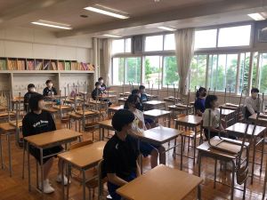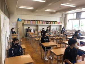 通常登校が始まった6月1日にミーティングを実施しました。3年生にとっての集大成である高体連中止について顧問2人からいくつか思いを伝えさせてもらいました。3年生は3人と少ないながらも一生懸命練習に取り組んできた成果が出て、高い技術力を有しています。それを発揮して最後の高体連で花を咲かせたかったところですが…。非常に残念でならないという思いがあります。ですが、3人とも悔しい思いを抱えながらも前向きに練習をしています。顧問2人も最後までともにやりきって、お互いに高め合えればと思っています。